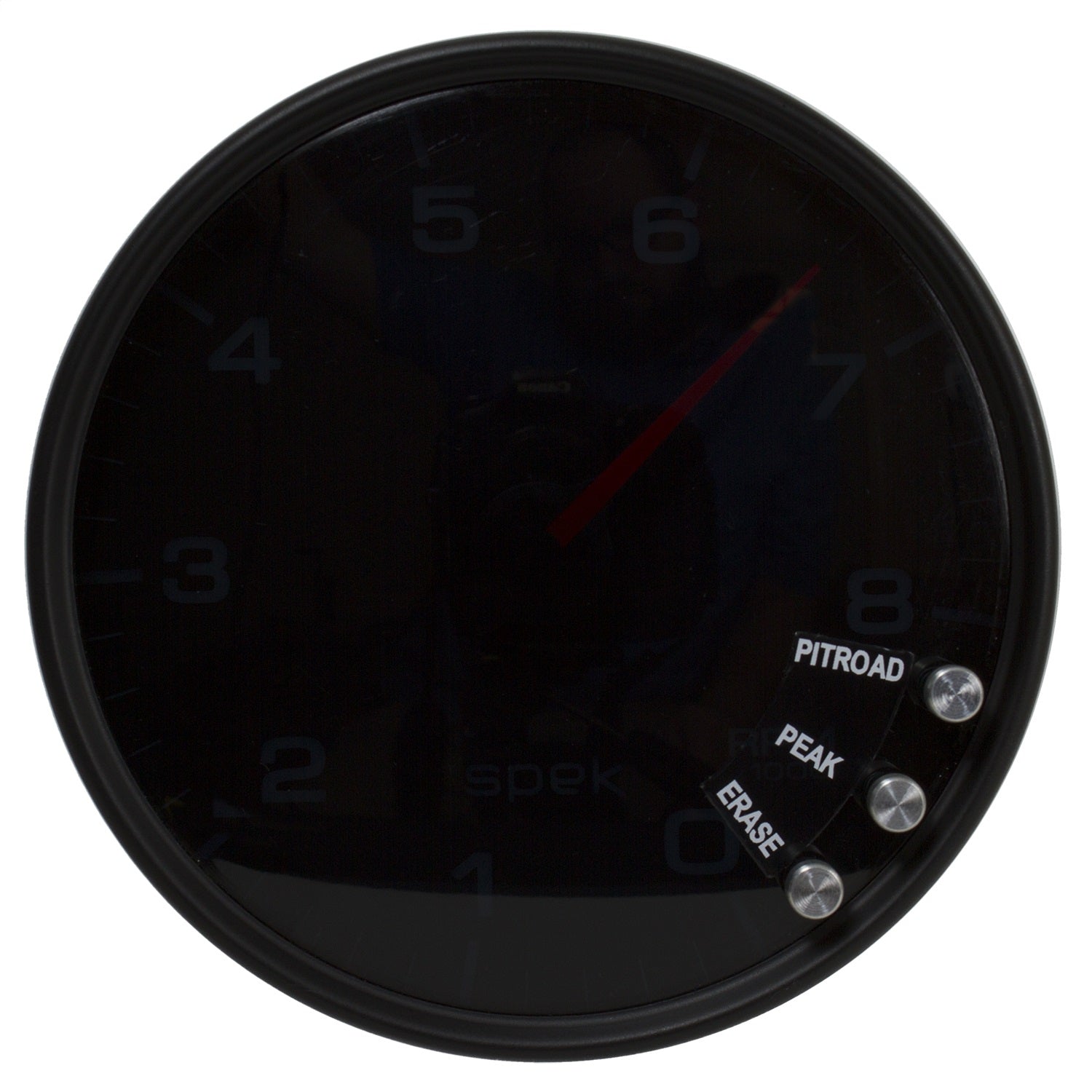 Tachometer - Spek Pro - 8000 RPM - Electric - Analog - 5 in Diameter - Dash Mount - Shift Light - Peak Recall - Black Face - Each