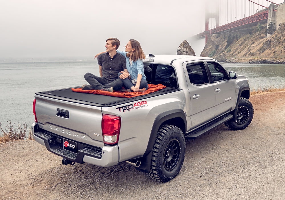 Introducing the BAK Revolver X4, featuring the same great features of the Revolver X2, now with a stylish matte black finish. When closed, heavy-duty aluminum slats secure the cover the full length of the bed on both sides, providing unrivaled strength and security. When opened, the cover rolls up tight providing full bed access without blocking rear view mirror and third brake light visibility.