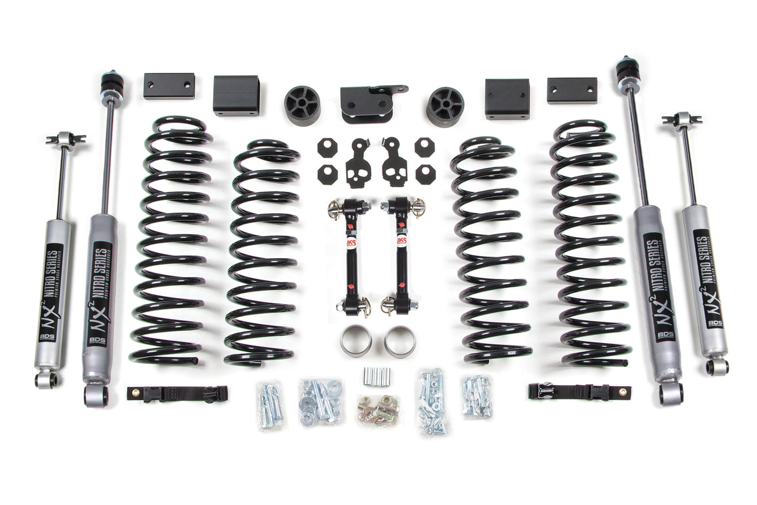 Upgrade the ride and style of your 2012-2018 Jeep Wrangler JK 4 Door with this 3-inch coil spring lift kit from BDS Suspension. Designed to improve stance this kit includes everything necessary to set your truck up right with clearance for up to 35 inch Tires.