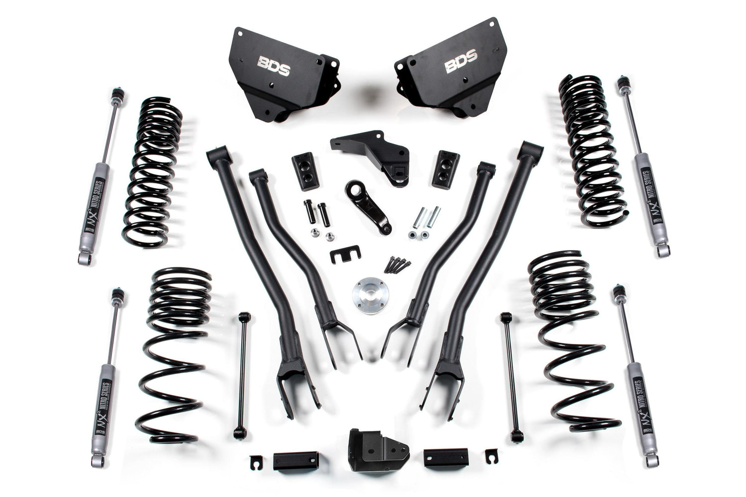 Built to outperform, BDS Suspension engineered a 4-inch lift kit with 4-Link conversion for your 2014-2018 RAM 2500 diesel powered truck that will surely impress. Designed to improve stance, performance, and capability, this kit includes everything necessary to set your truck up right with clearance for up to 35 inch Tires.