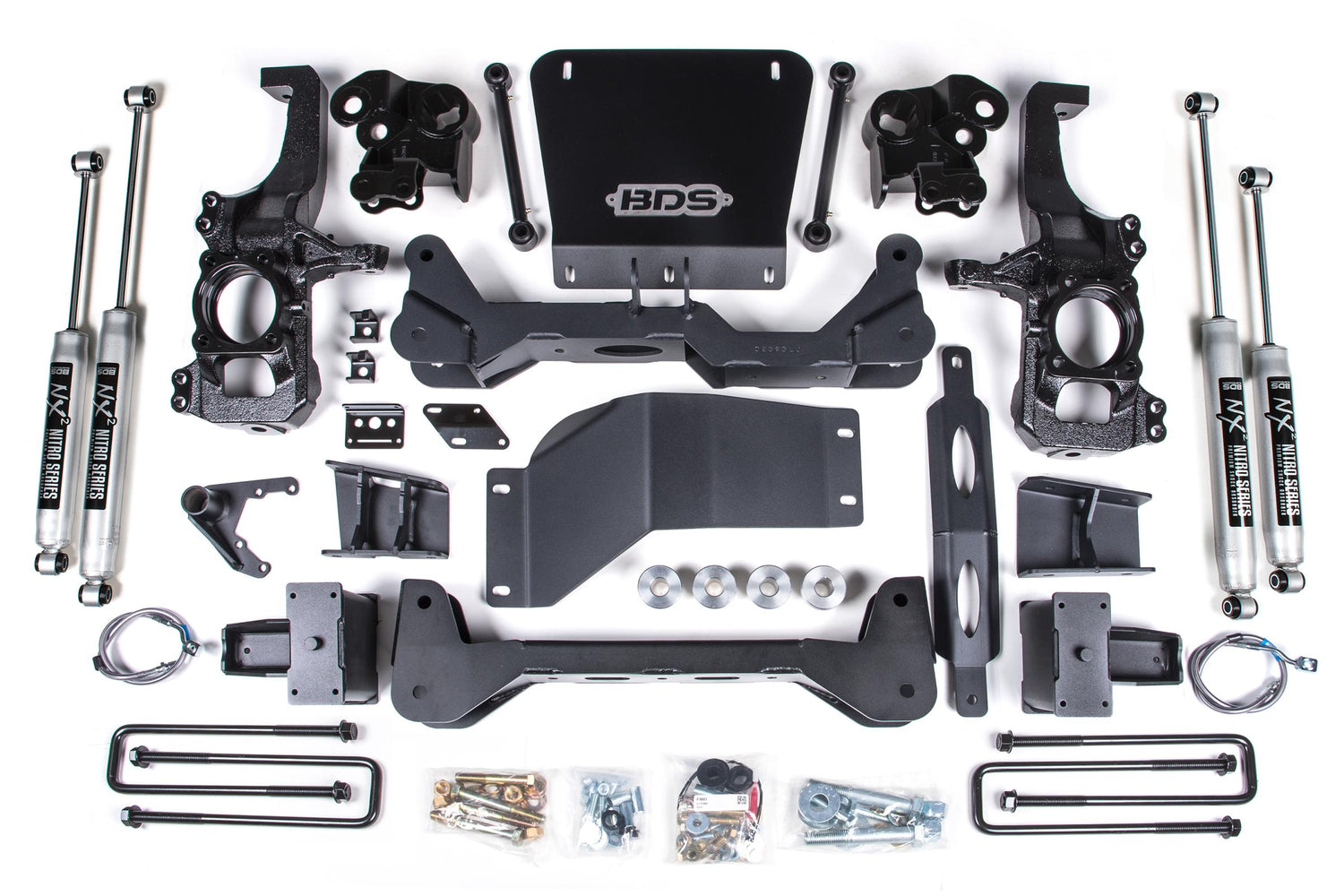 This kit takes advantage of BDS's tried and true high-clearance design for improved ground clearance, strength, and offroad protection while correcting suspension and steering geometry for great on-road handling characteristics.