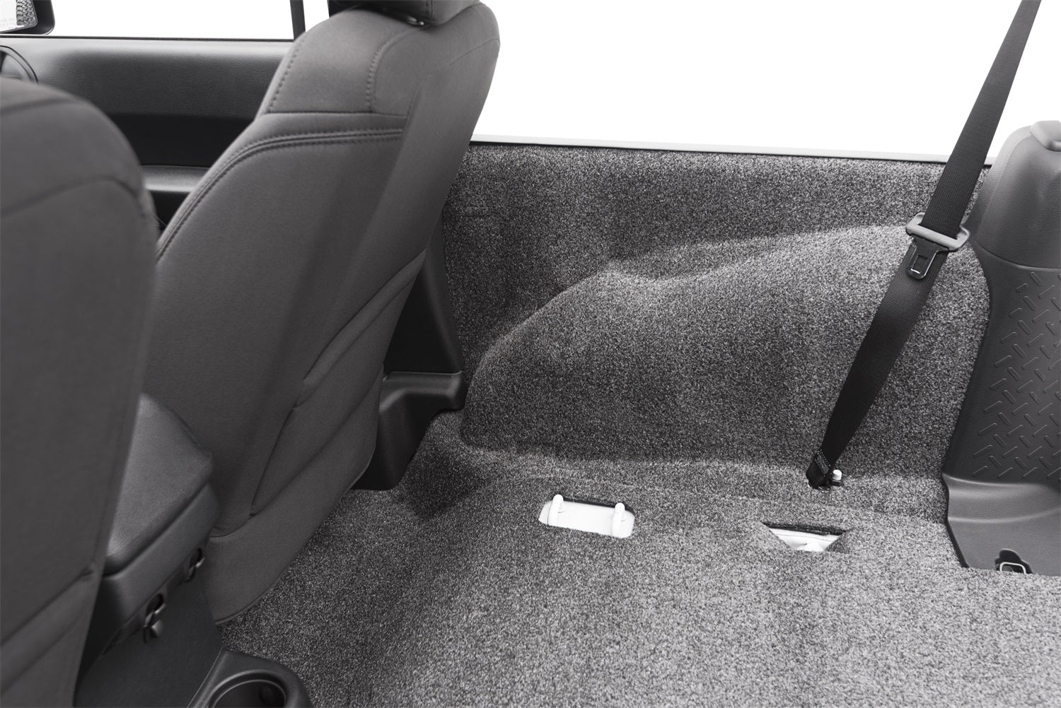 This 100 waterproof, fully custom-molded die cut system is sold as a 3pc front and 4pc rear kit and installs quickly without the need to remove any seat brackets or the center console. Individual pieces can be quickly removed and hosed off after a long day on the trail if desired. The BedRug material dries quickly, resists all harsh chemicals, and will not stain, stink, mold or mildew. The 1/4-inch polypropylene foam kit, with provided heat shields, insulates your interior from road noise and heat.