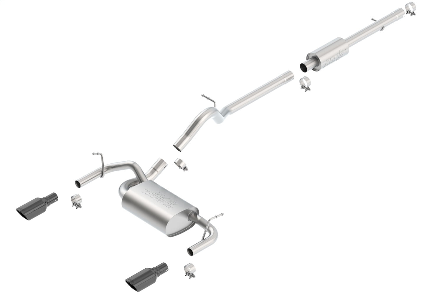 This system features a black chrome finish on T-304 stainless steel tips. Using Borla(r) Stainless Steel Polish p# 21461 is NOT recommended with these black chrome tips. We suggest cleaning the tips with hot water and a microfiber cloth. Borla(r) Cat-Back(tm) and Axle-Back exhaust systems feature patented straight-through and multi-core technology designed to unleash hidden horsepower. Increased exhaust velocity adds power, driving excitement, fuel economy, and the distinctive Borla(r) Sound of Power respected by motoring enthusiasts everywhere. Each system is built from premium T-304 stainless steel, superior to T-400 series knockoffs (such as 409), to give you the absolute best in performance and durability. Ultra-smooth mandrel bends ensure maximum flow & power, and precision computer-controlled CNC manufacturing ensures an accurate fit. Best of all, Borla(r) stands behind every system with a Million-Mile Warranty. Just what you'd expect from the world's most experienced (and most winning) exhaust brand.