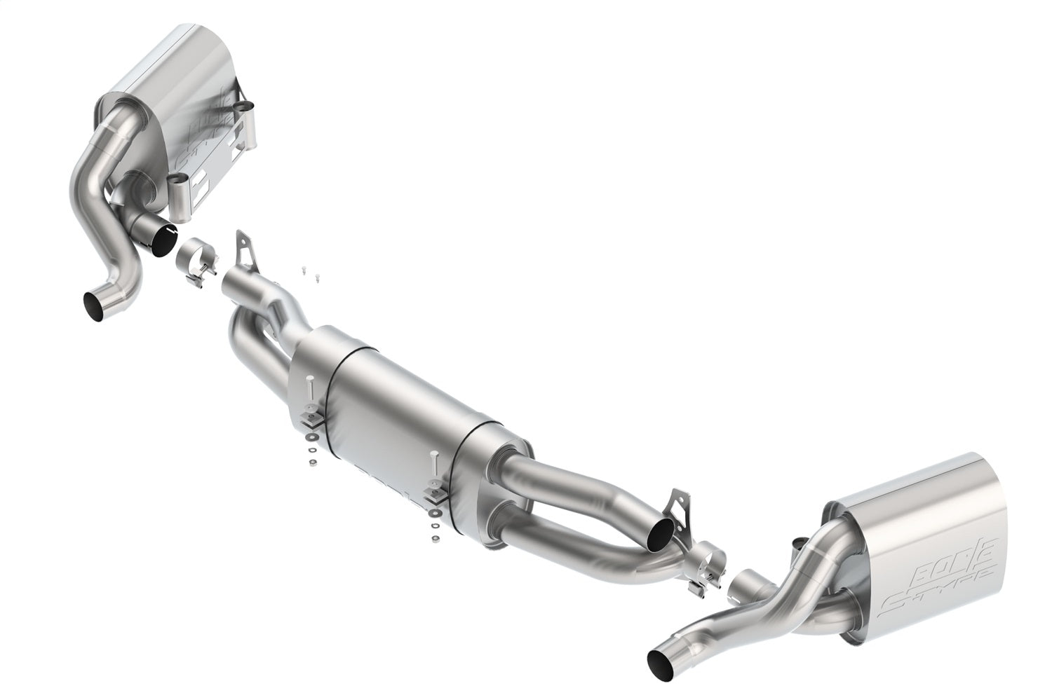 The BORLA(R) sound of power. Its been described as asonic shot of adrenaline. An intoxicating concert ofsteel, gears and combustion that echoes from thespeedways, deserts and highways of the world.The sound of more victory laps than any otherbrand, the BORLA(R) exhaust note has become the quintessentioal soundtrack of high-performance motoring. And like all good automotive designs there is function behing the form. As any driving enthusiast knows, the sound of an exhaust provides more than just ear candy. Its a communications conduit between car and driver. A link between human and machine. The exhaust sound provides accoustic feedback of engine rpm to aid the driver in critical decisions such as gear selection or throttle input in rev-match shifting. At BORLA(R), we understand this concept better than any exhaust manufacturer. Combining patented technology with computer modeling, extensive prototyping and advanced sound analysis tools. BORLA(R) engineers spend countless hours tuning exhaust systems to best reflect the personality and performance of vehicle applications. The result is an enhanced driving experience. With unrivaled clarity, the BORLA(R) exhaust note can help a driver stay within the powerband through a difficult section, using the exciting sensory feedback of sound. With unrivaled clarity the Borla exhaust note can help a driver stay within the powerband through a difficult section, using the exciting sensry feedback of sound.