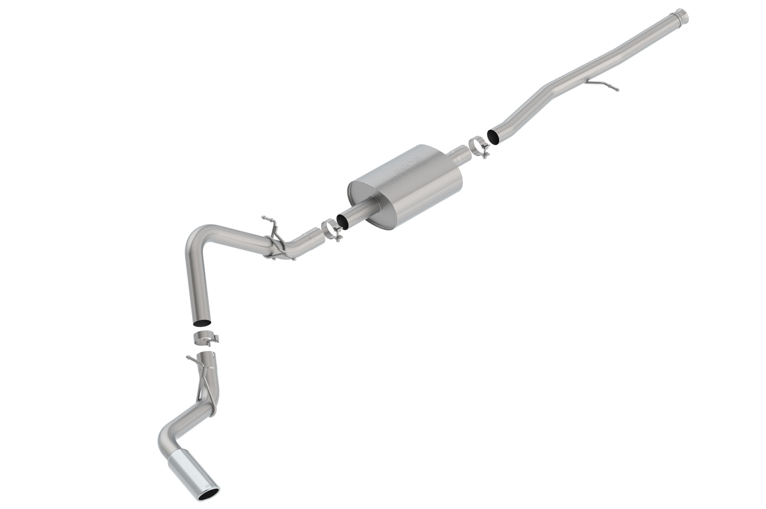 Factory Single Side Exit vehicles ONLY. Add Adapter 60708 for Crew Cab with Standard Bed (6' 7") 157" Wheelbase vehicles. The 3" diameter Borla(r) Cat-Back(tm) system has a side exit (passenger) featuring the classic S-Type sound level with no drone inside the vehicle, and a 4" round bright chrome on T-304 stainless steel tip. A system with a black chrome on T-304 stainless steel tip is also available. Borla(r) Cat-Back(tm) and Axle-Back exhaust systems feature patented straight-through and multi-core technology designed to unleash hidden horsepower. Increased exhaust velocity adds power, driving excitement, fuel economy, and the distinctive Borla(r) Sound of Power respected by motoring enthusiasts everywhere. Each system is built from premium, high-quality T-304 austenitic stainless steel, superior to T-400 to give you the absolute best in performance and durability. Ultra-smooth mandrel bends ensure maximum flow & power, and precision computer numerical control (CNC) manufacturing ensures an accurate fit. Give your Silverado or Sierra the power and sound it deserves, bolt on a Borla(r). You can count on Borla(r) to provide durability, performance, sound, and a Million-Mile Warranty.