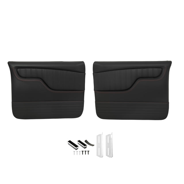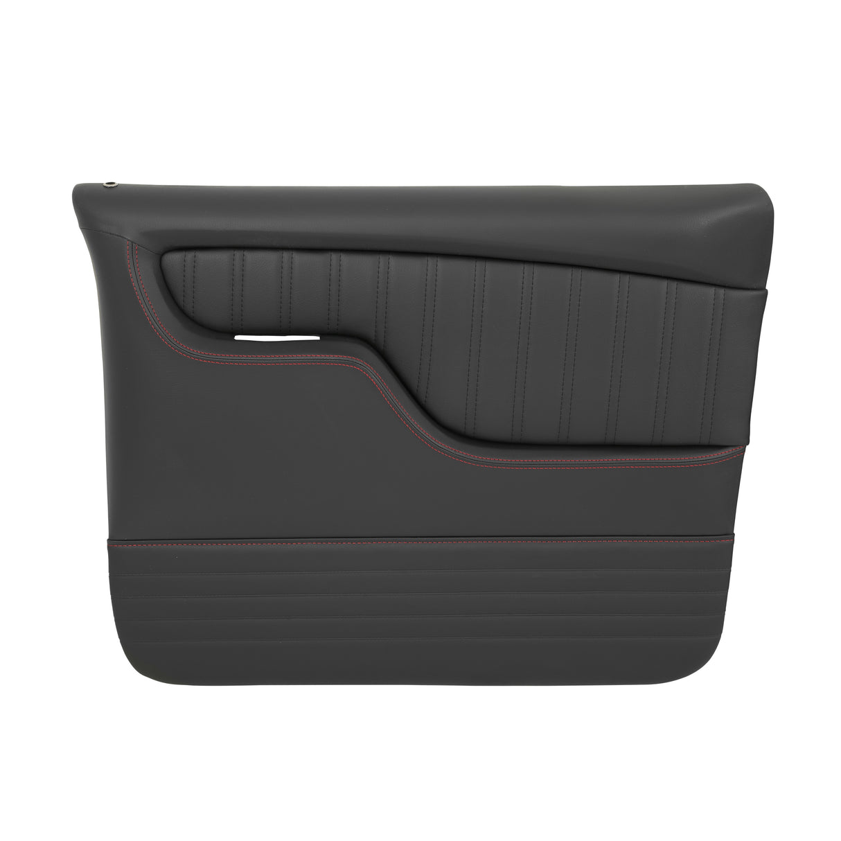 Brothers Trucks Sport Pro-Classic Custom Door Panels are specifically designed for your classic truck. Add style and performance to your interior. Constructed of a fiberglass base covered in premium black vinyl with Red contrast stitching. Features an integrated armrest.