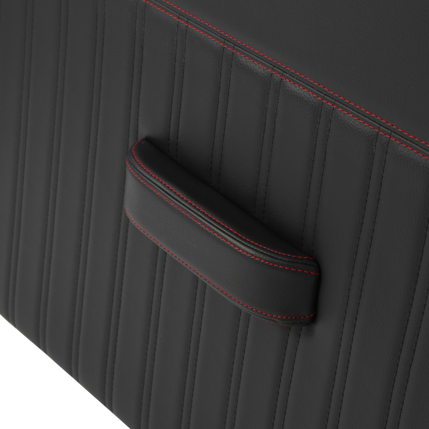 - Constructed with fiberglass base covered in black vinyl with stitching