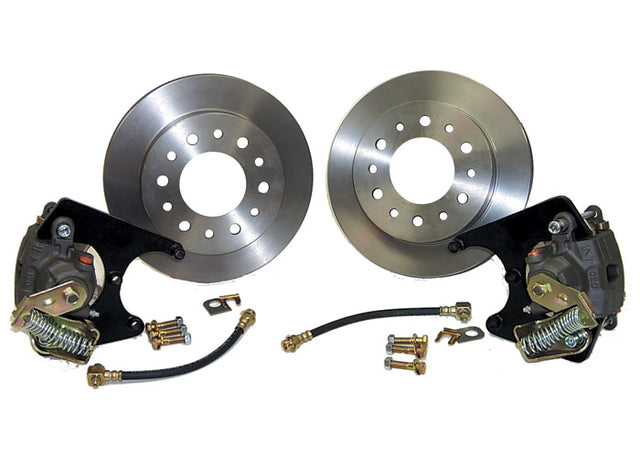 Brothers now offers you the option of upgrading the rear of your 1/2-ton truck to disc brakes. When converting to rear disc brakes, make sure to use a 4-wheel disc brake proportioning valve. DOES NOT WORK WITH STOCK WHEELS, DOES NOT WORK ON REARENDS WITH PRESSED ON BACKING PLATE