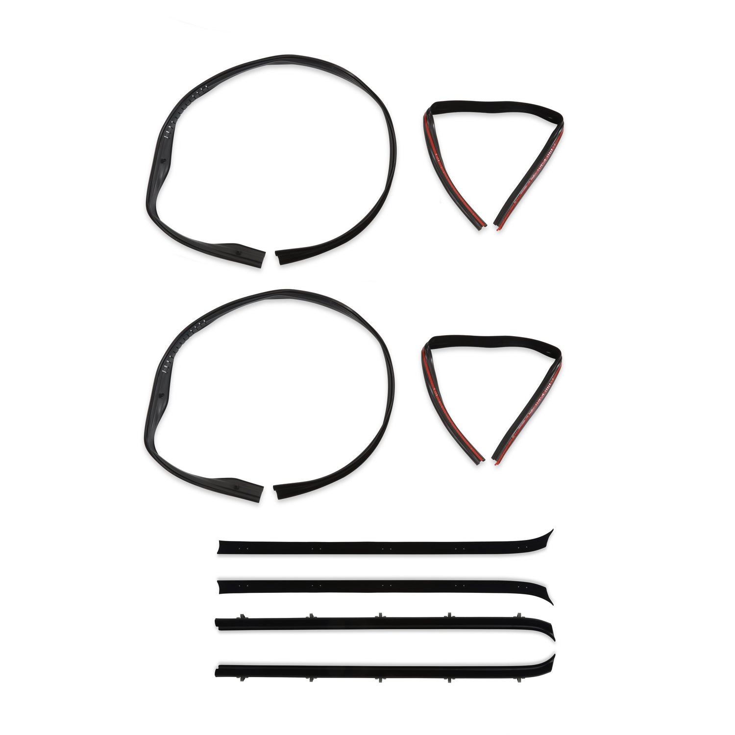 These sets come complete with window run channels, division bar felt channels and a complete felt and scraper set. One set does both front doors. Excellent quality!