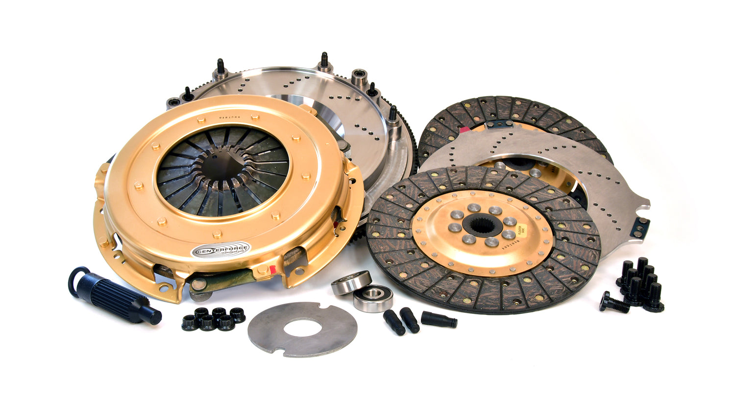 Introducing the NEW Centerforce(R) SST (Solid Street Twin). The SST clutch system has been engineered and developed for vehicles producing 400 to 925 ft/lbs of torque. The SST 10.4 in. discs utilize solid hubs (possible gear noise) to reduce the rotational weight on the input shaft for quick clean shifts. The discs in this assembly are built using high quality friction materials, for smooth engagement and longevity. The SST features a lightened billet steel flywheel, providing low inertia resulting in quicker RPM and the Centerforce anti-rattle system to reduce floater rattle/noise. No complicated setup or adjustments required, just bolt it in and "Get a Grip". The Centerforce SST includes a billet steel flywheel, 2 discs, floater plate, pressure plate, pilot bearing, alignment tool, and ARP pressure plate and flywheel hardware. The SST clutch system is an economical choice for streetcar enthusiasts looking for a complete high-quality twin disc clutch system. This new clutch assembly can be used for everyday use and spirited days on the track.