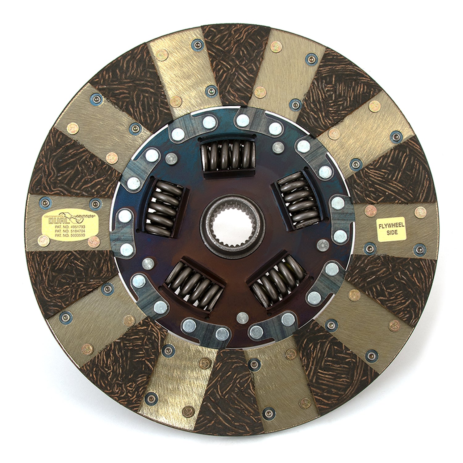 The Centerforce(R) Dual Friction(R) Clutch Series is a performance matched pressure plate & disc combination featuring the patented Centerforce centrifugal weight system (where applicable) and specialized machining processes to provide a performance clutch that offers exceptional street characteristics, while offering outstanding holding-capacity and durability. Furthermore, the Centerforce Dual Friction disc has an organic full facing on one side for longevity and an organic segmented facing on the other side providing increased holding capacity. Some applications have the organic segmented facings of both sides. The Dual Friction clutch is engineered for those who are looking for the ultimate in street/strip holding power and performance without sacrificing pedal effort and driver control. While the Dual Friction has been engineered primarily as a street clutch it can be used in mild competition applications.