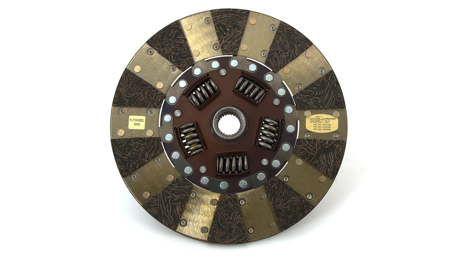 The Centerforce(R) Dual Friction(R) Clutch Series is a performance matched pressure plate & disc combination featuring the patented Centerforce centrifugal weight system (where applicable) and specialized machining processes to provide a performance clutch that offers exceptional street characteristics, while offering outstanding holding-capacity and durability. Furthermore, the Centerforce Dual Friction disc has an organic full facing on one side for longevity and an organic segmented facing on the other side providing increased holding capacity. Some applications have the organic segmented facings of both sides. The Dual Friction clutch is engineered for those who are looking for the ultimate in street/strip holding power and performance without sacrificing pedal effort and driver control. While the Dual Friction has been engineered primarily as a street clutch it can be used in mild competition applications.