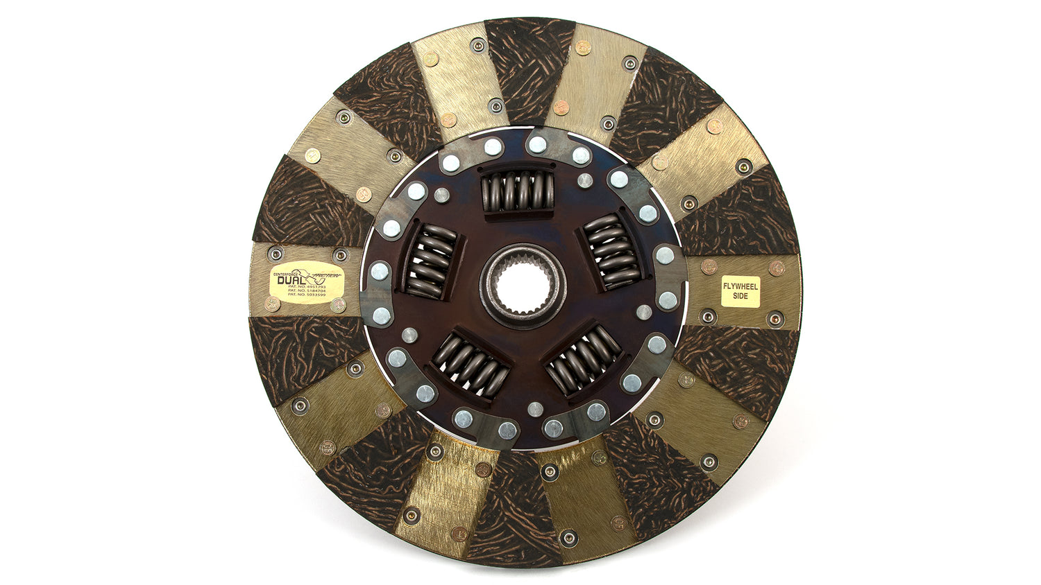 The Centerforce(R) Dual Friction(R) Clutch Series is a performance matched pressure plate & disc combination featuring the patented Centerforce centrifugal weight system (where applicable) and specialized machining processes to provide a performance clutch that offers exceptional street characteristics, while offering outstanding holding-capacity and durability. Furthermore, the Centerforce Dual Friction disc has an organic full facing on one side for longevity and an organic segmented facing on the other side providing increased holding capacity. Some applications have the organic segmented facings of both sides. The Dual Friction clutch is engineered for those who are looking for the ultimate in street/strip holding power and performance without sacrificing pedal effort and driver control. While the Dual Friction has been engineered primarily as a street clutch it can be used in mild competition applications.