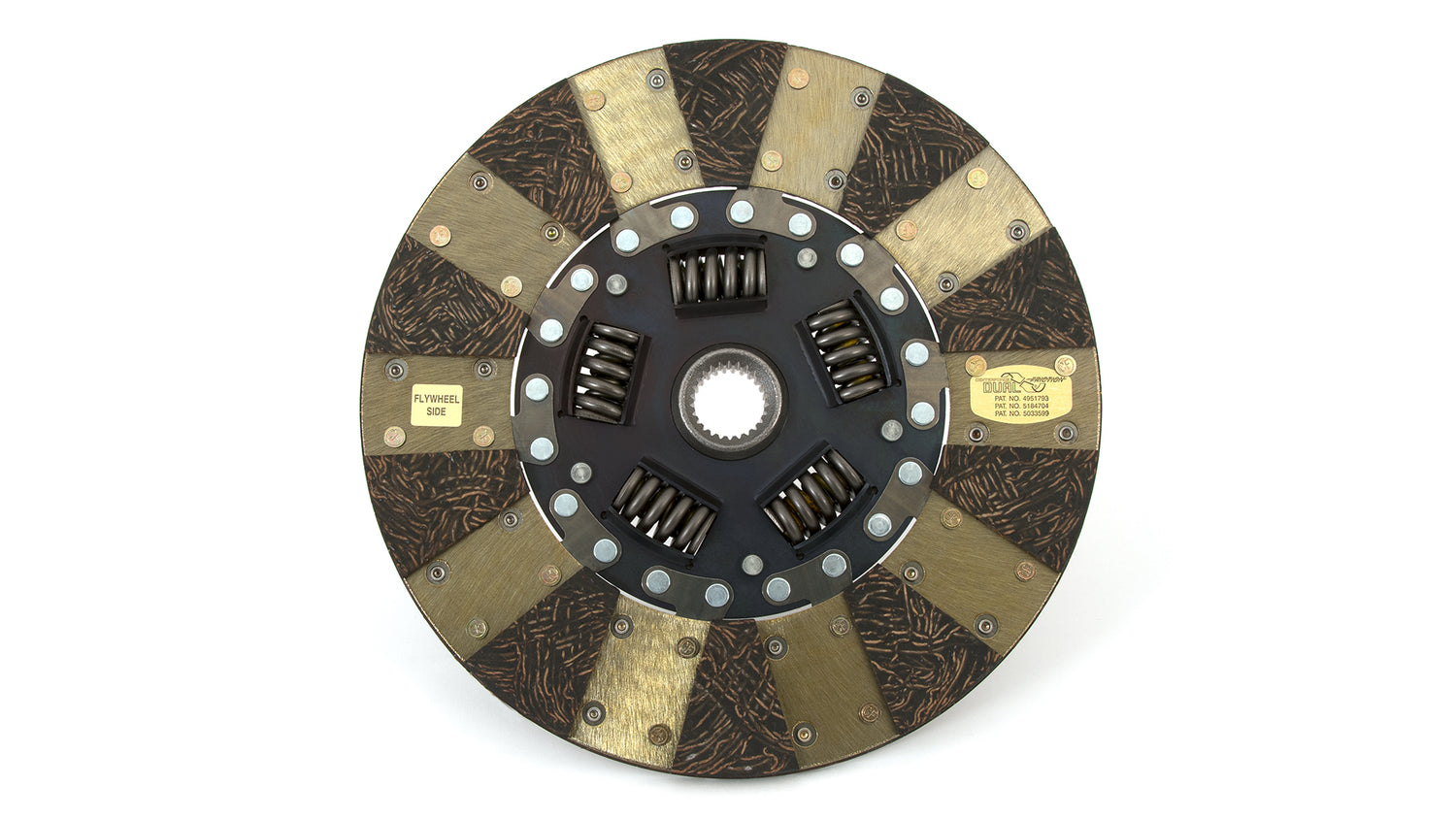 The Centerforce(R) Dual Friction(R) Clutch Series is a performance matched pressure plate & disc combination featuring the patented Centerforce centrifugal weight system (where applicable) and specialized machining processes to provide a performance clutch that offers exceptional street characteristics, while offering outstanding holding-capacity and durability. Furthermore, the Centerforce Dual Friction disc has an organic full facing on one side for longevity and an organic segmented facing on the other side providing increased holding capacity. Some applications have the organic segmented facings of both sides. The Dual Friction clutch is engineered for those who are looking for the ultimate in street/strip holding power and performance without sacrificing pedal effort and driver control. While the Dual Friction has been engineered primarily as a street clutch it can be used in mild competition applications.