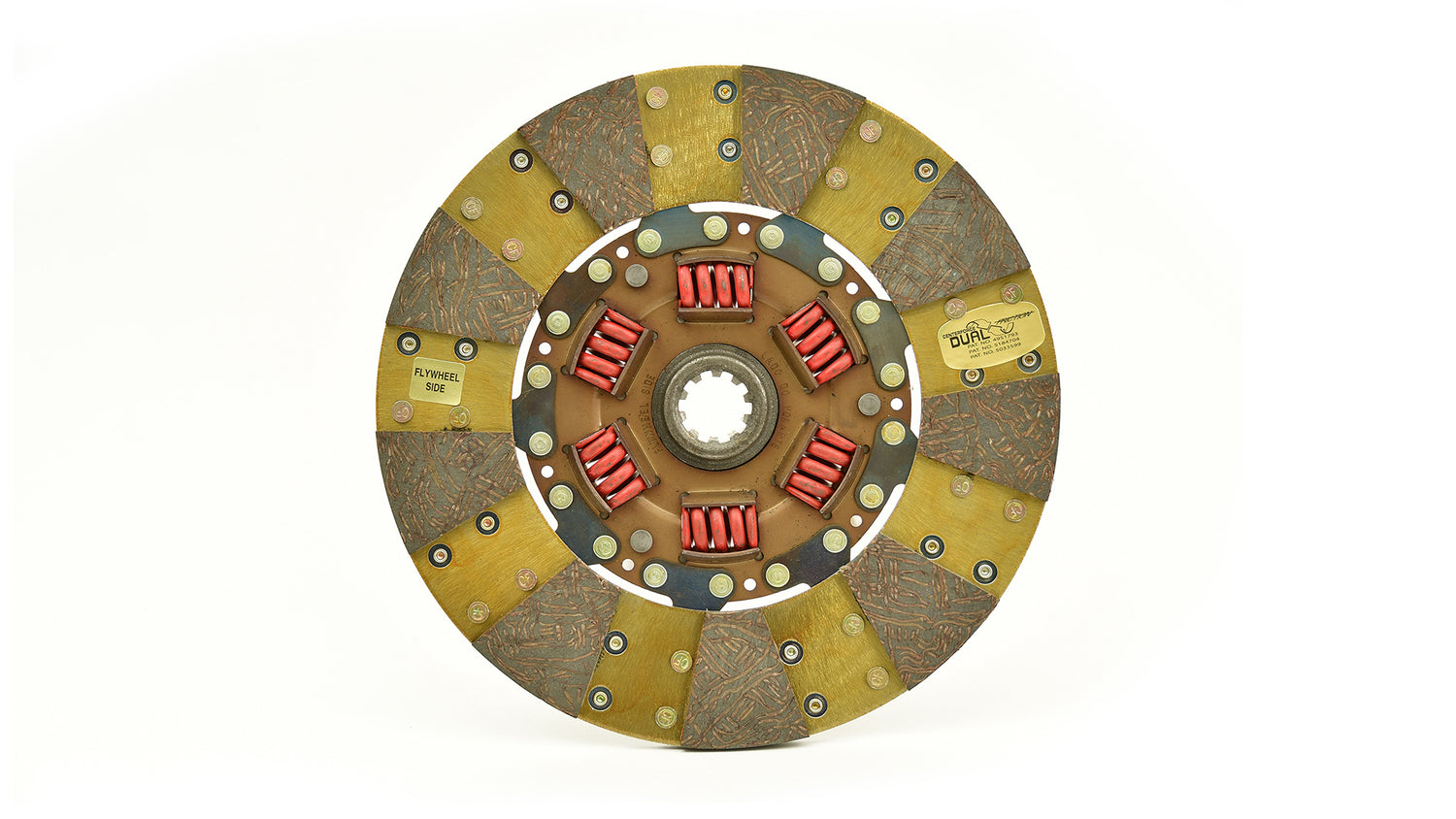 The Centerforce(R) Dual Friction(R) Disc Series uses a single disc with patented dual friction technology by distributing pressure plate clamp force evenly over a 360-degree friction-facing on one side of the clutch disc, while the opposing side uses a segmented friction-facing to concentrate clamping pressure and increase clutch holding-capacity. These discs are made for Centerforce Dual Friction pressure plates.