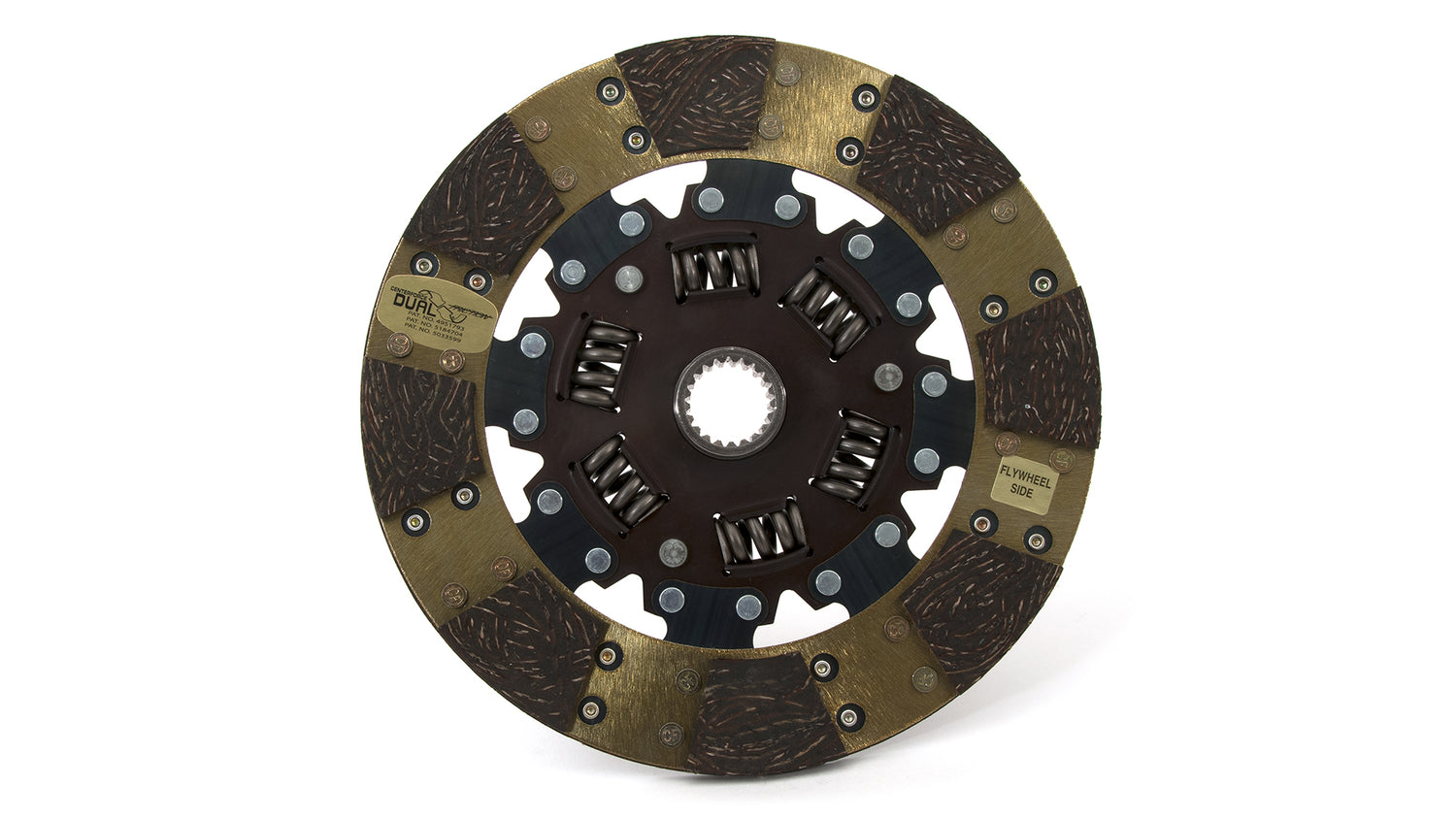 The Centerforce(R) Dual Friction(R) Clutch Series is a performance matched pressure plate & disc combination featuring the patented Centerforce centrifugal weight system (where applicable) and specialized machining processes to provide a performance clutch that offers exceptional street characteristics, while offering outstanding holding-capacity and durability. Furthermore, the Centerforce Dual Friction disc has an organic full facing on one side for longevity and an organic segmented facing on the other side providing increased holding capacity. Some applications have the organic segmented facings of both sides. The Dual Friction clutch is engineered for those who are looking for the ultimate in street/strip holding power and performance without sacrificing pedal effort and driver control. While the Dual Friction has been engineered primarily as a street clutch it can be used in mild competition applications.