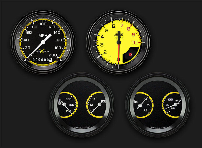 Classic Instruments AX05YBLF - AutoCross Yellow Four Gauge Set