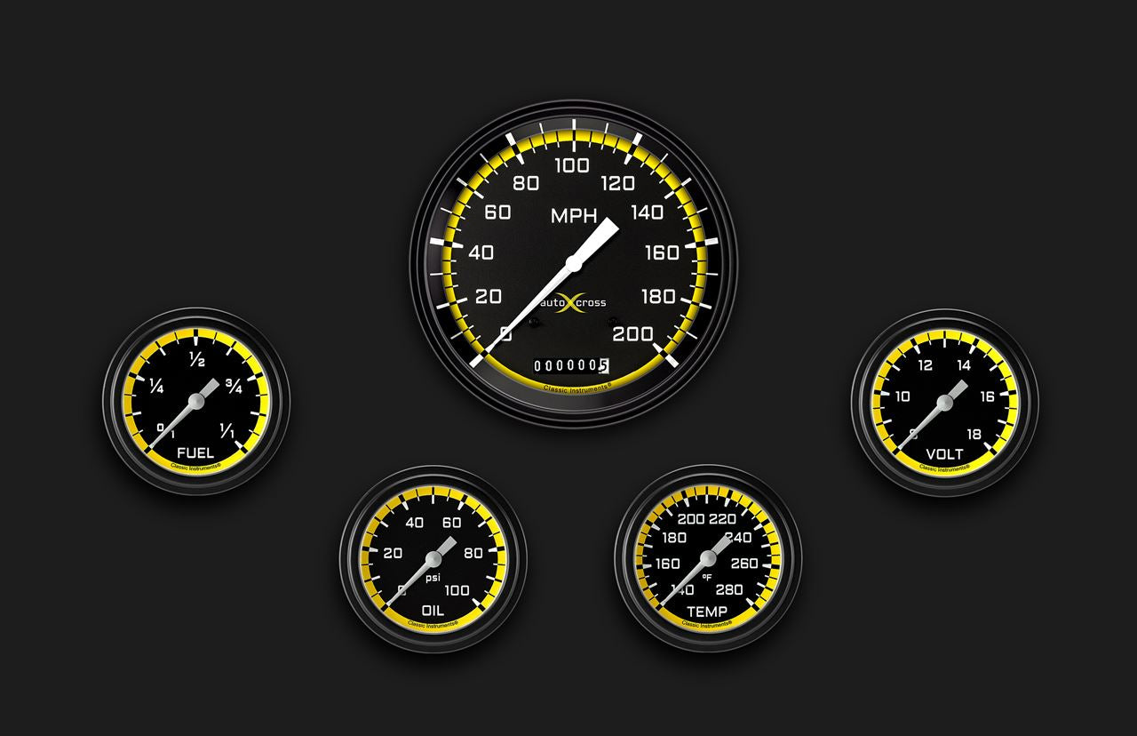 Classic Instruments AX354YBLF - AutoCross Yellow Five Gauge Set 354