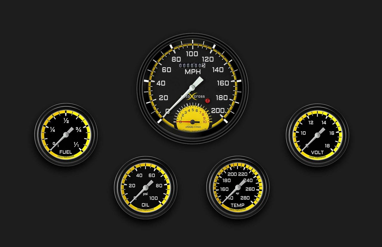 Classic Instruments AX365YBLF - AutoCross Yellow Five Gauge Set 365