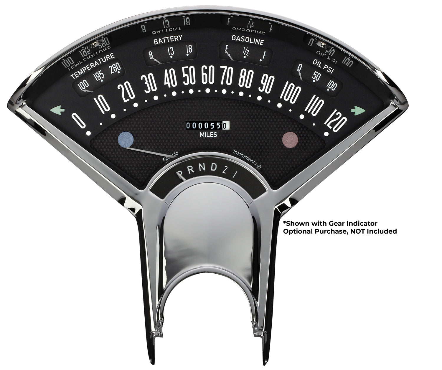 The Bel Era III direct-fit package offers the perfect combination of all-electric technology and the nostalgic stock look of 1955-'56 Chevys. Built with an injection molded housing and dual-layer design, it provides a speedometer, fuel gauge, oil, temp, and volt gauges all in one easy to install cluster. New to the Bel Era III is a fuel sender selector switch to easily choose the correct resistance range during installation.