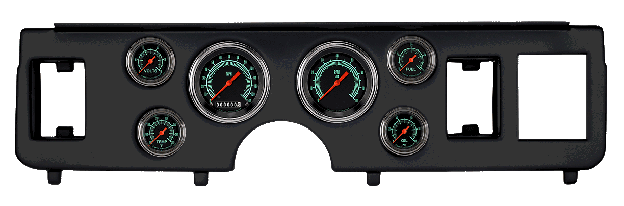 Complete assembly kit with Classic Instruments;G/Stock Series;gauges and molded;panel from Classic Dash. Panel accepts;3 3/8; speedometer;and tachometer,;and 2 1/8; fuel, oil, volt, and temp instruments.;Speedometer and tachometer include Classic Instruments ZST™ for ease of calibration, and the ability to read pulse;generator, vehicle speed sensor, or ECM signals. This kit includes Classic Instruments;full-sweep;small gauges.