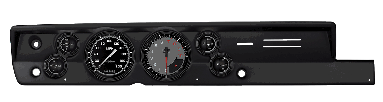 Complete assembly kit with Classic Instruments;AutoCross Gray Series;gauges and molded;panel from Classic Dash. Panel accepts 4 5/8; speedometer;and tachometer,;and 2 1/8; fuel, oil, volt, and temp instruments.;Speedometer and tachometer include Classic Instruments ZST™ for ease of calibration, and the ability to read pulse;generator, vehicle speed sensor, or ECM signals. This kit includes Classic Instruments short-sweep;small gauges.