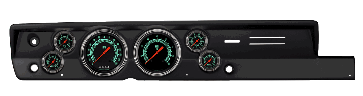 Complete assembly kit with Classic Instruments;G/Stock Series;gauges and molded;panel from Classic Dash. Panel accepts 4 5/8; speedometer;and tachometer,;and 2 1/8; fuel, oil, volt, and temp instruments.;Speedometer and tachometer include Classic Instruments ZST™ for ease of calibration, and the ability to read pulse;generator, vehicle speed sensor, or ECM signals. This kit includes Classic Instruments;full-sweep;small gauges.