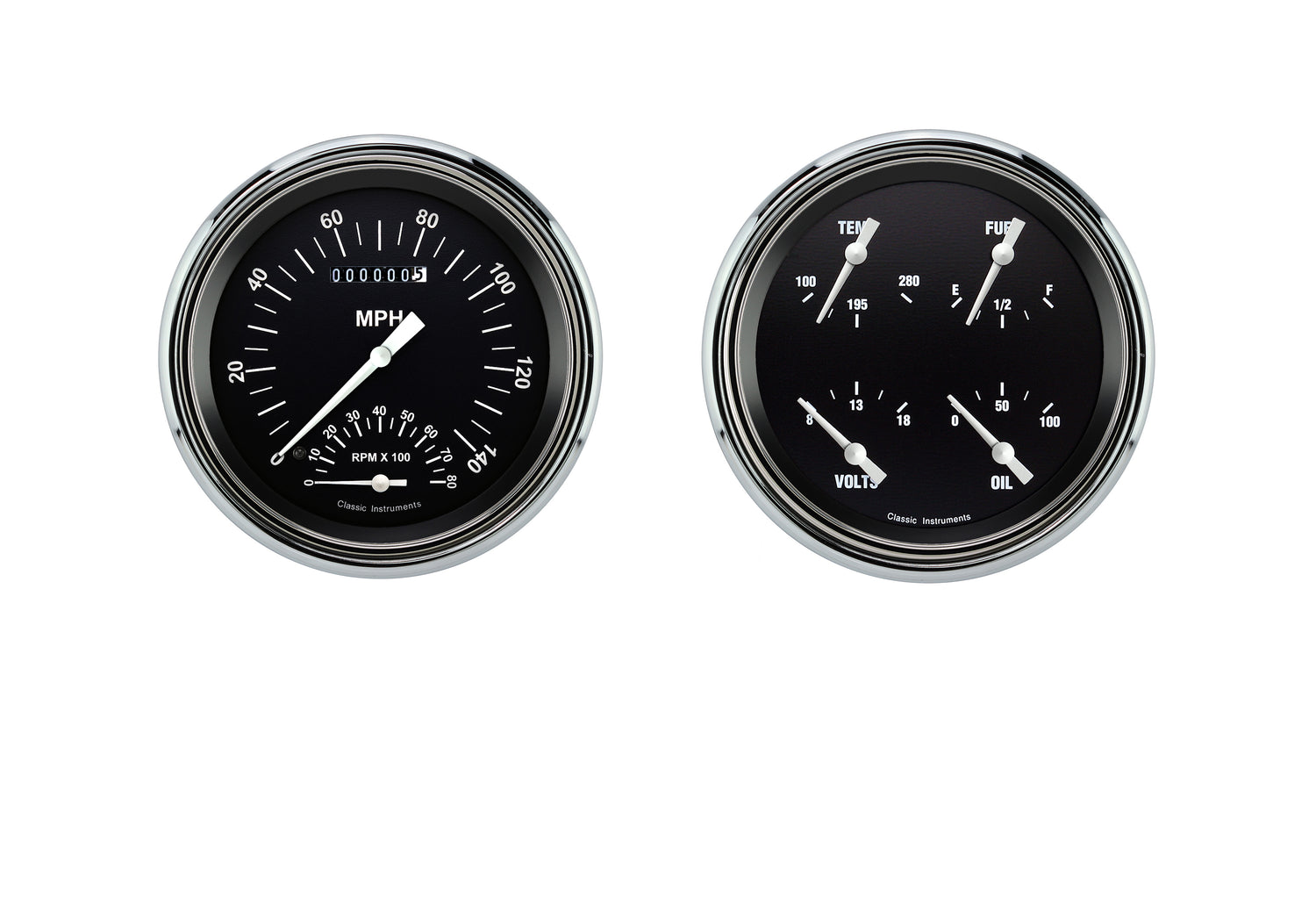 - 1947-53 Hot Rod Truck Package features a 4 5/8" Speedtachular (Speedo/Tach combination gauge) and Quad (Fuel, Oil, Temp, Volt combination gauge) with stainless low step bezels and flat glass lenses.