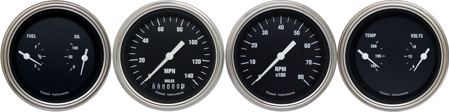 Hot Rod Series 3 3/8"Speedo, Tach, & 2 Duals with Stainless Low Step Bezel Flat Glass Lens