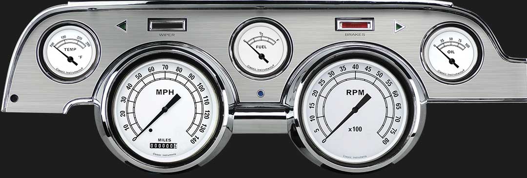 The 1967-68 Mustang Package with our;Classic White series installed, features a 4 5/8" Speedometer and tachometer, 2 1/8" Fuel (75-10 OHM), oil, and temp gauges. The cluster is completely assembled and mounted in a brushed aluminum style bezel. The unit is pre-wired and includes all necessary* sending units, mounting hardware, and a wiring harness;constructed of automotive grade TXL wire, machine-crimped terminals, tech-flex sleeving, and Molex main connectors.;Equipped with our ZST™ and works directly with ECM or VSS signal, no need for an additional control box.