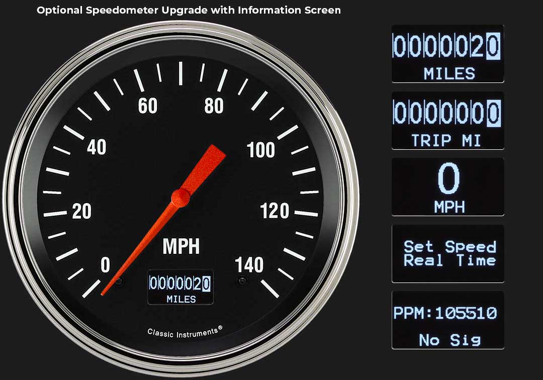 - The 1967-68 Mustang Package with our;Hot Rod series installed, features a 4 5/8" Speedometer and tachometer, 2 1/8" Fuel (75-10 OHM), oil, and temp gauges
