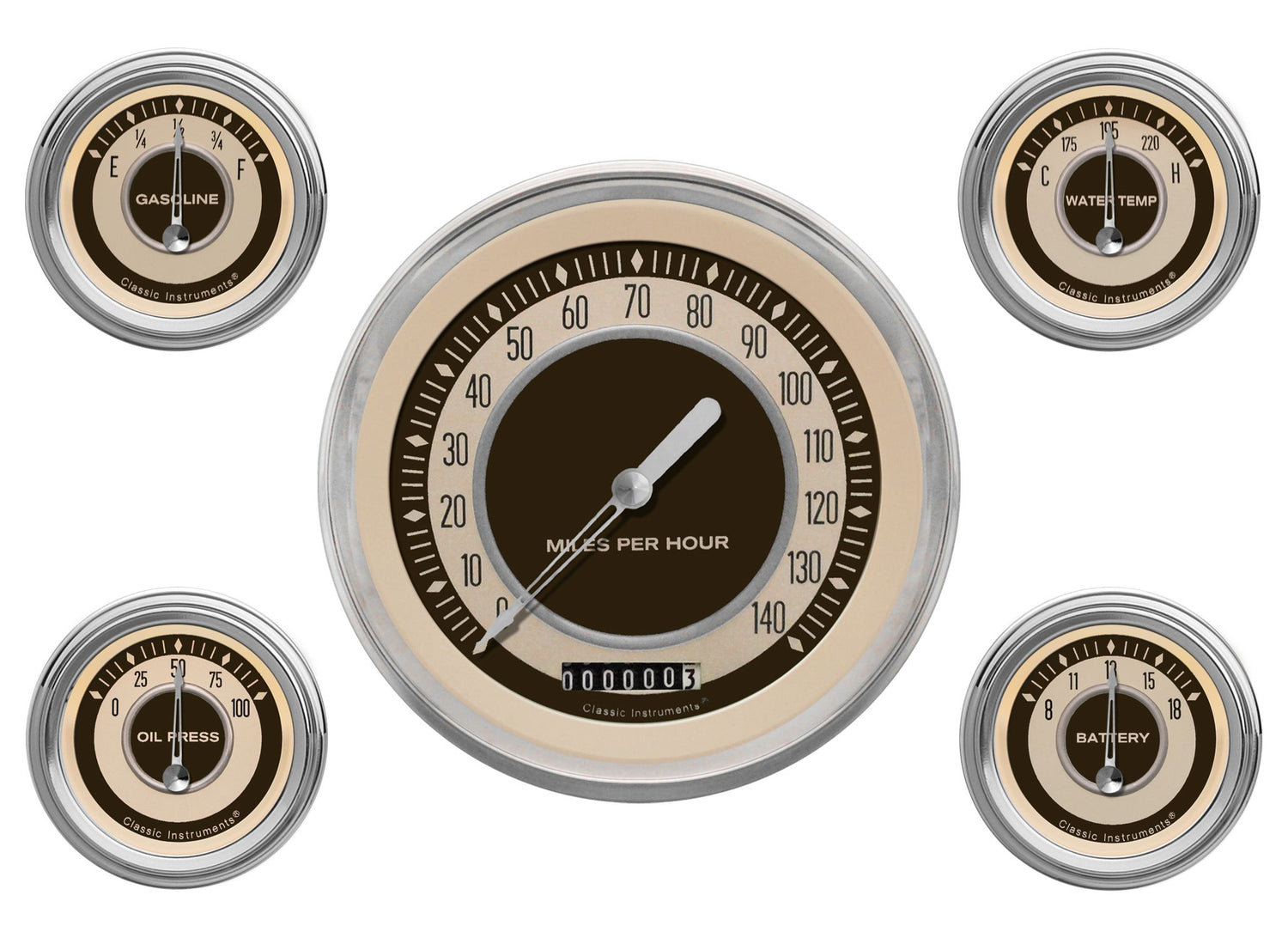 Nostalgia VT Series 4 5/8" Speedo, 2 1/8" Fuel, Oil, Temp, Volt with Stainless Low Step Bezel Curved Glass Lens