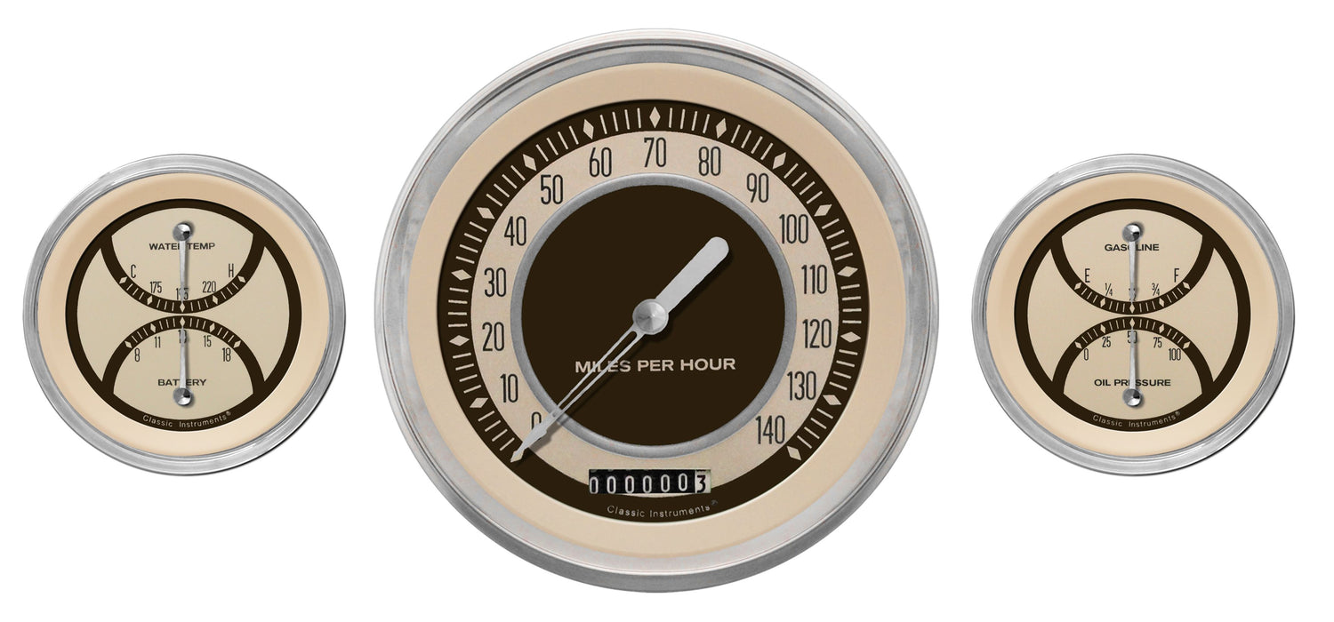 Nostalgia VT Series 4 5/8" Speedometer & 2 Duals with Stainless Low Step Bezel Curved Glass Lens