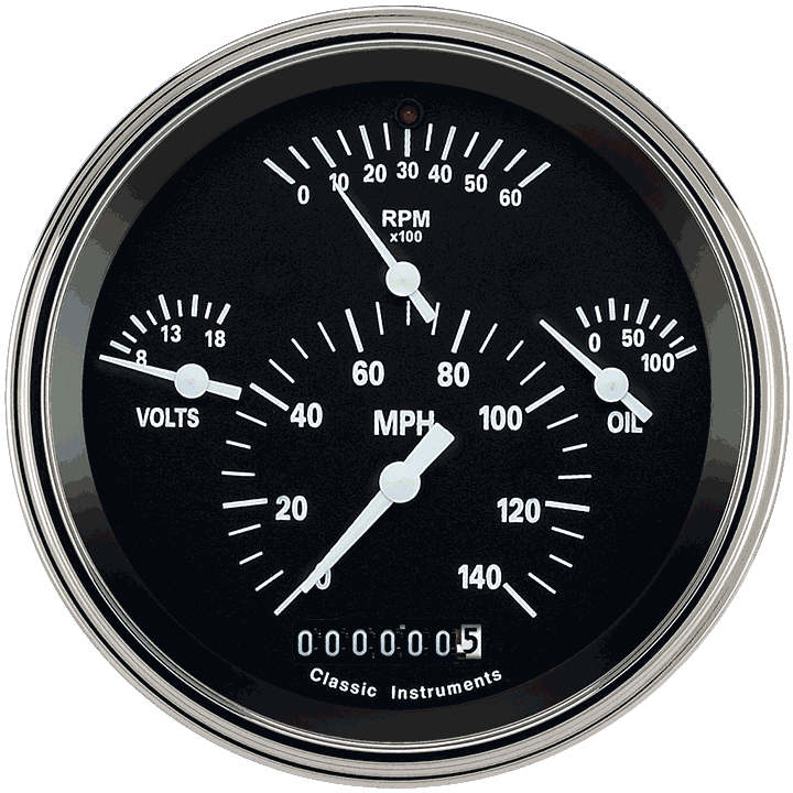 Classic Instruments TE40BSLF - Tetra Series, Black Combination Gauge