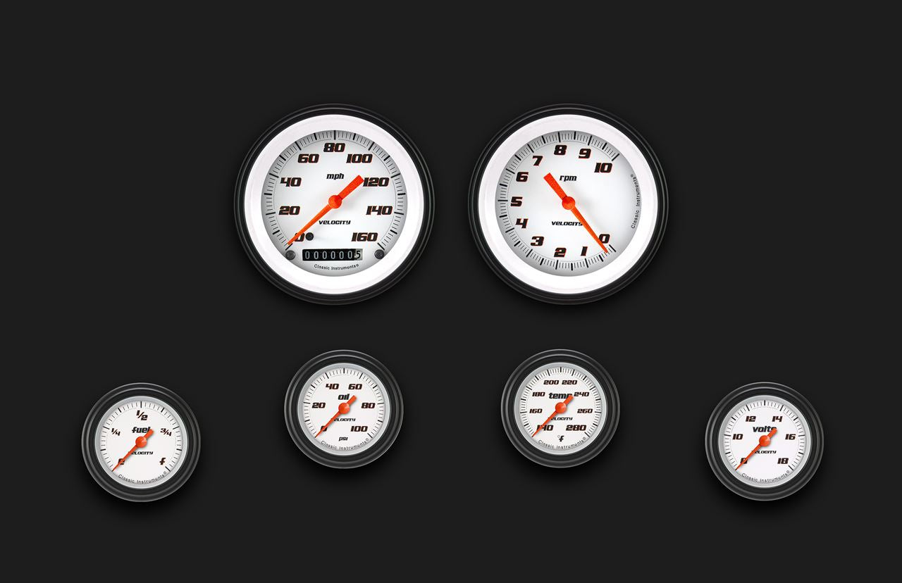 Classic Instruments VS101WBLF - Velocity White Six Gauge Set 101
