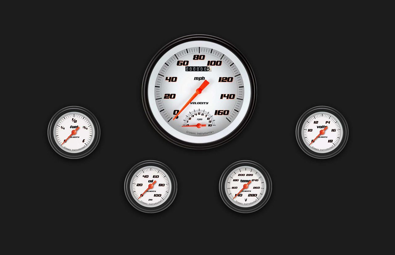 Classic Instruments VS165WBLF - Velocity White Five Gauge Set 165