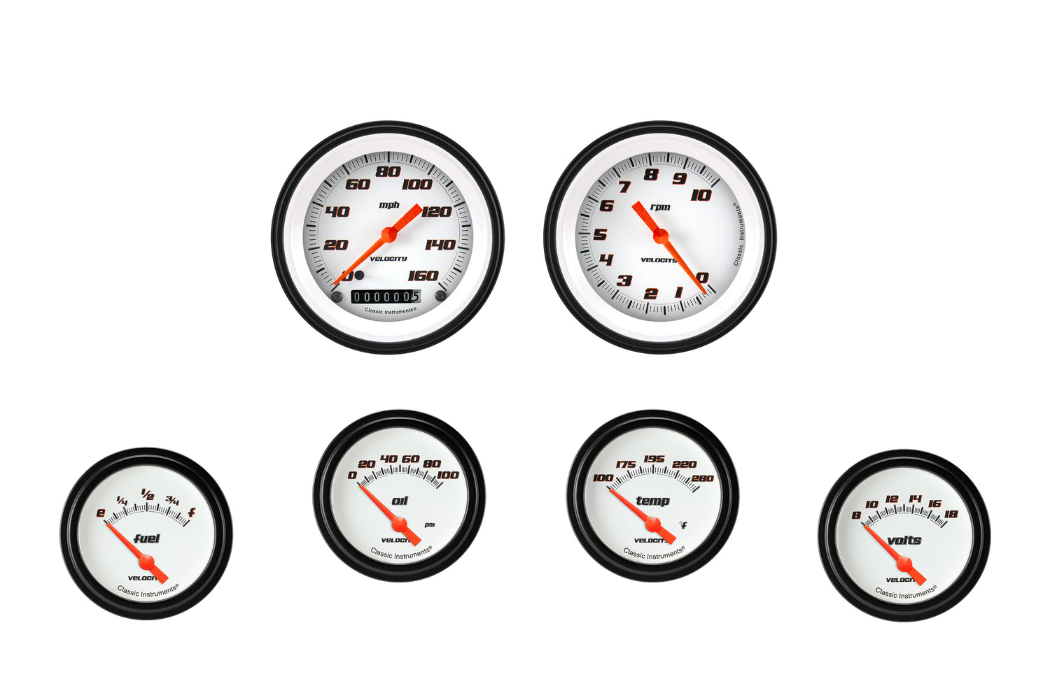 Classic Instruments VS201WBLF - Velocity White Six Gauge Set 201