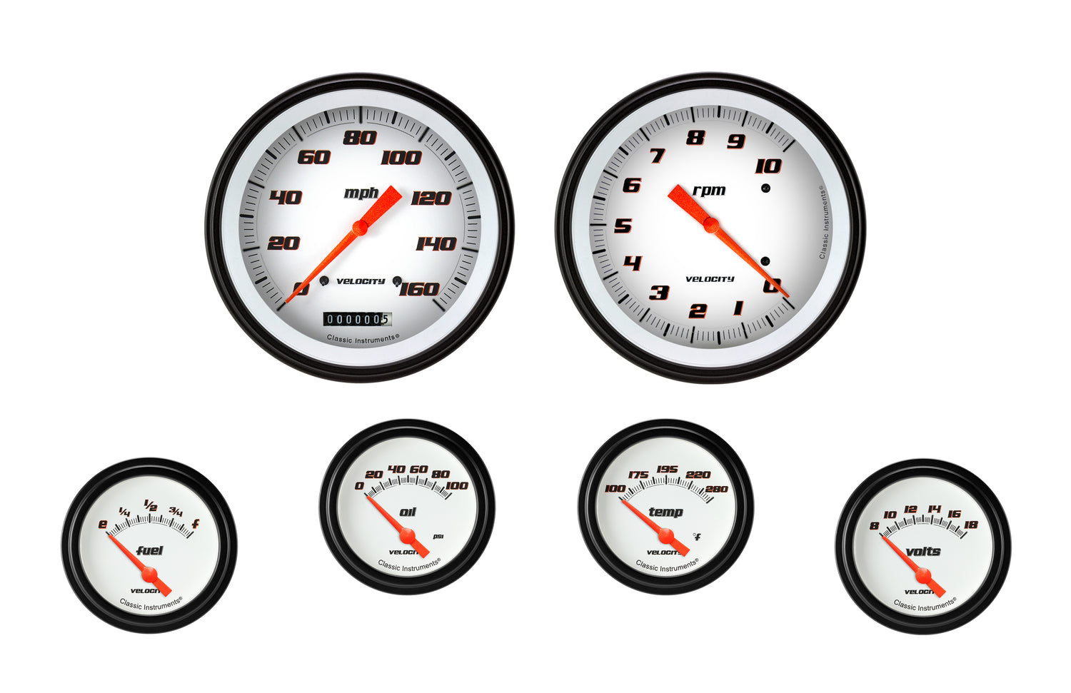 Classic Instruments VS251WBLF - Velocity White Six Gauge Set 251