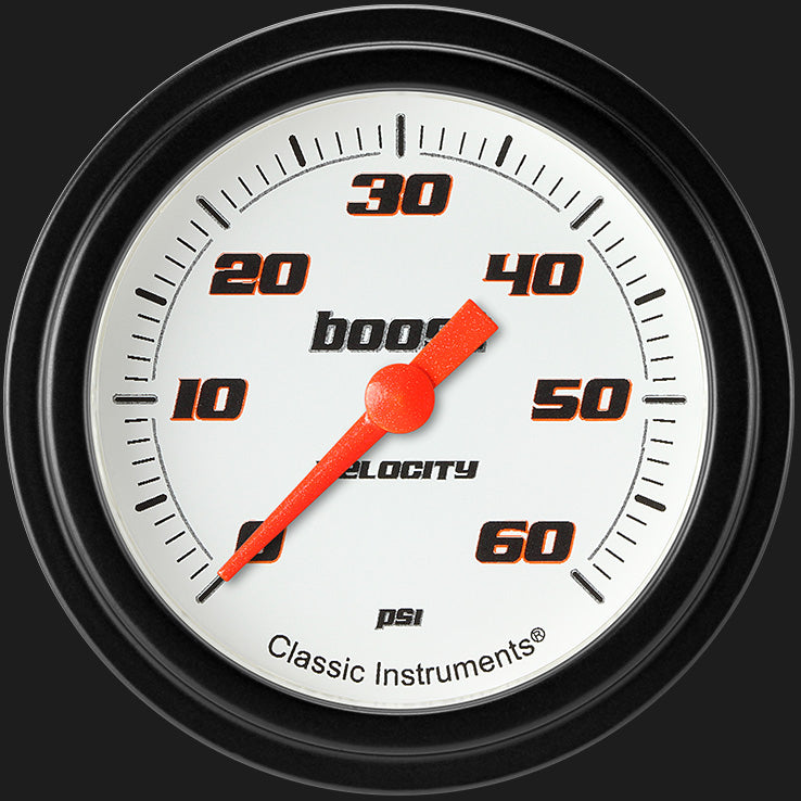Classic Instruments VS343WBLF - Velocity White 2 5/8" Boost Gauge, 60 psi