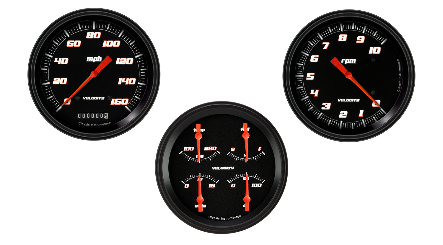 Classic Instruments VS53BBLF - Velocity Black Series Three Gauge Set