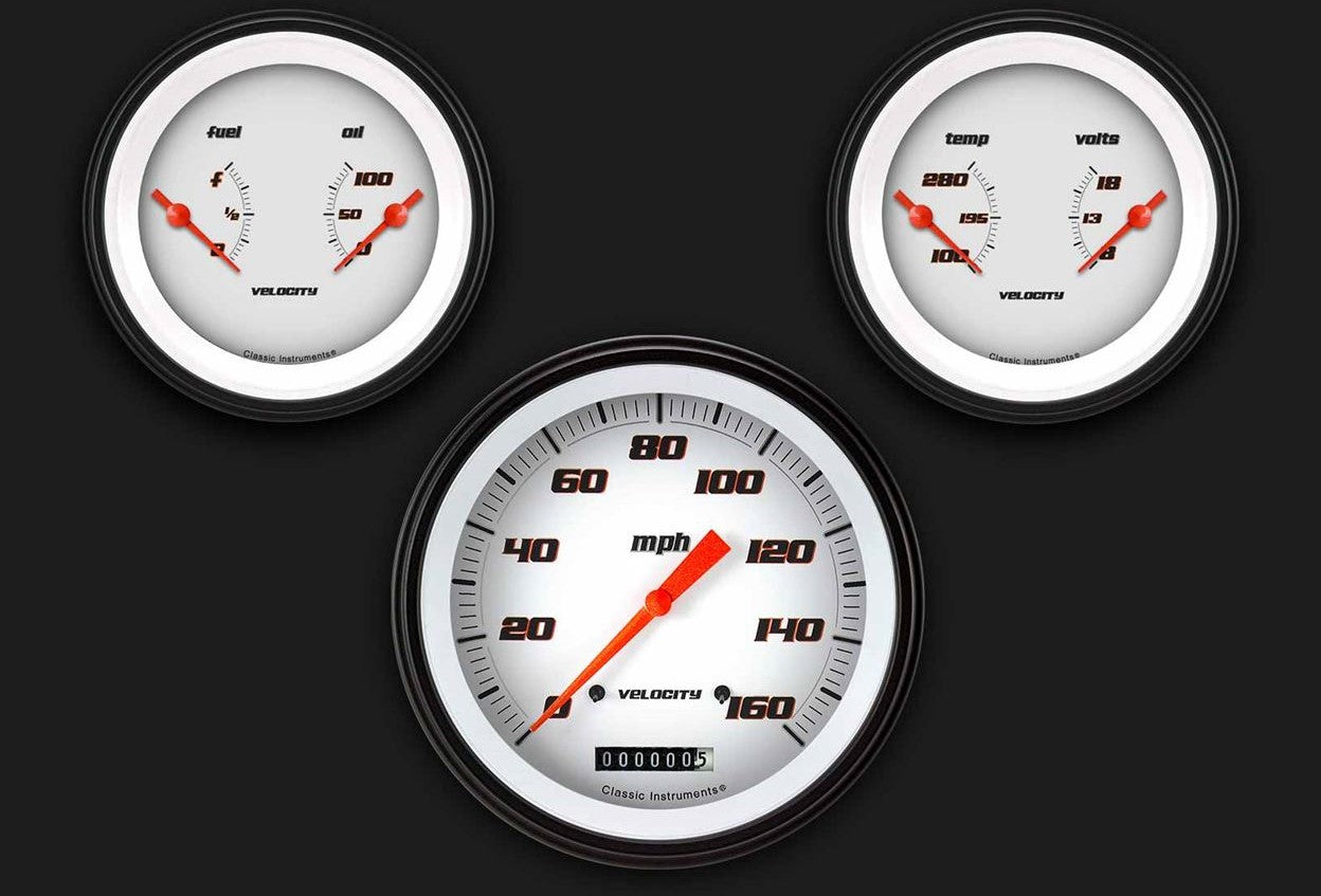 Classic Instruments VS64WBLF - Velocity White Three Gauge Set