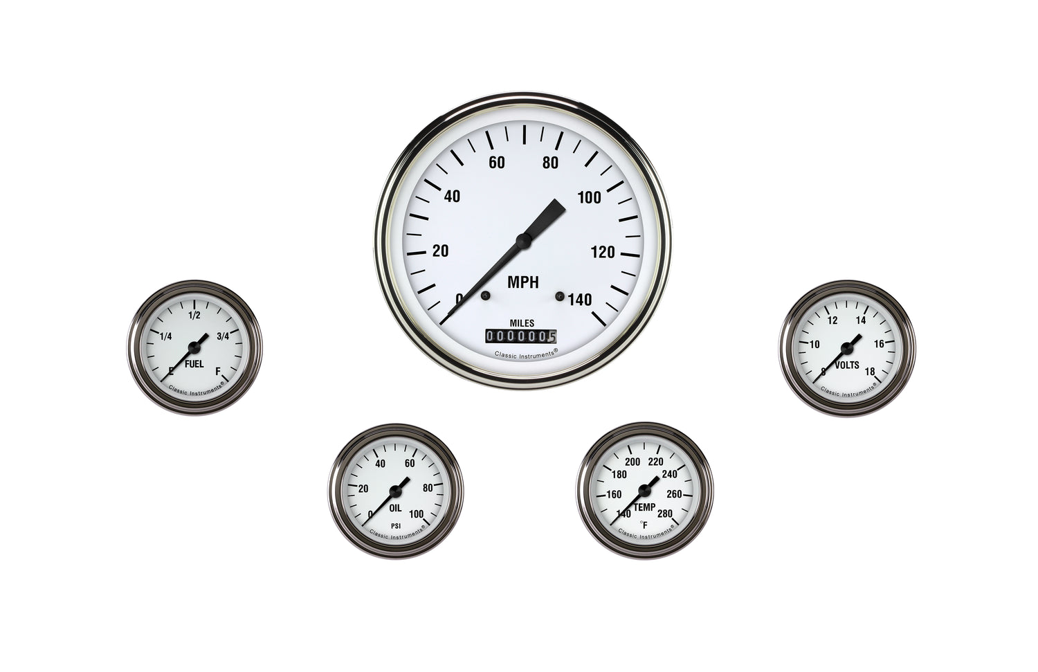 Classic Instruments WH154SLF - White Hot Five Gauge Set 154