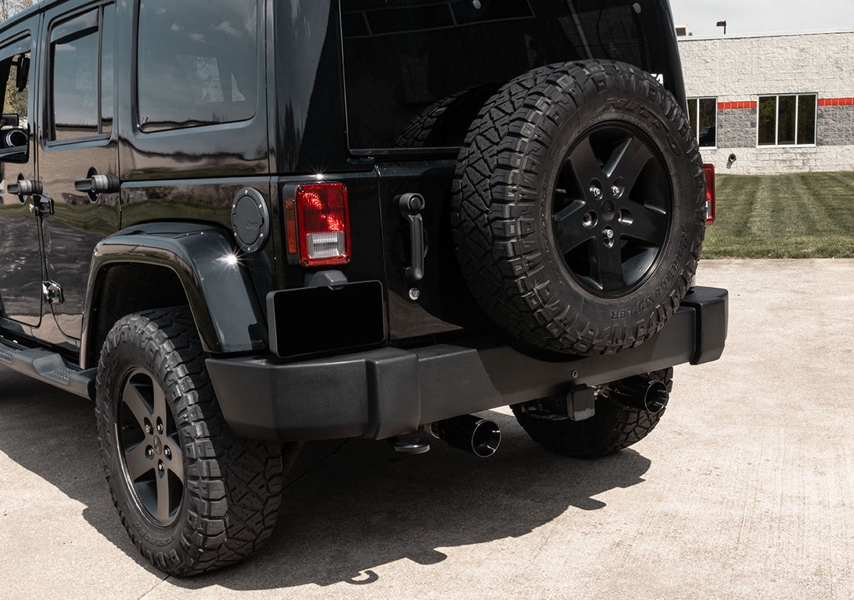 The CORSA Performance JK catback exhaust system features CORSA's Patented Reflective Sound Cancellation (RSC) Technology allows acoustic engineers to create an Aggressive drone free exhaust note, styled specifically to fit the personality of your vehicle. This JK catback exhaust system moves the muffler to the center of the vehicle providing for better clearance and maximum approach angles for offroad driving.