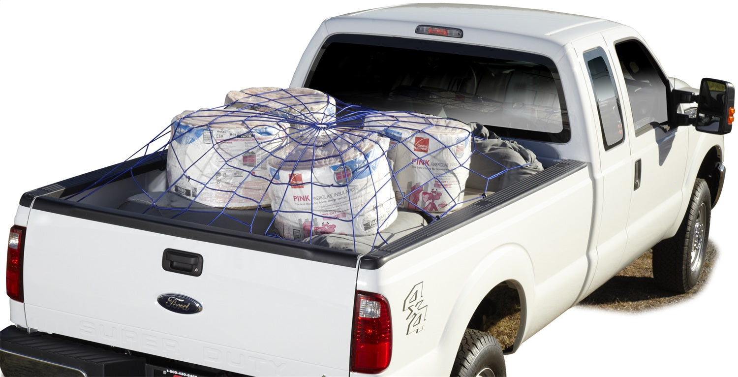 Our patented design uses Mother Nature's web shape to secure even and uneven loads quickly and with style. Quickly secure your cargo in the bed area of your pickup with a spider-like web. Constructed from heavy duty 6mm stretch cord with stainless steel center rings for extra strength. Available in 4 colors.