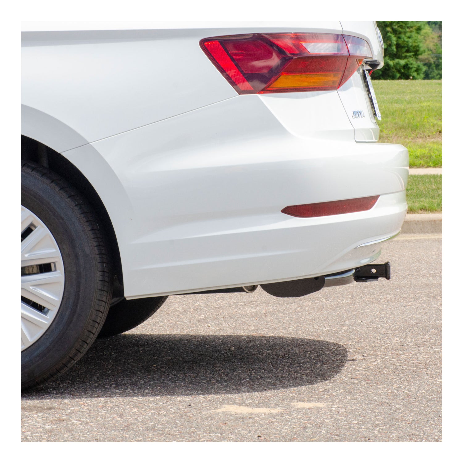 However you define adventure -- whether it's climbing onto the back of a mountain bike, hunting from the top of a tree stand or camping with the family a long way from nowhere -- CURT class 1 hitches provide a light-duty towing receiver to help you Bring It. Each is made to fit a specific vehicle, providing easier installation, a better fit and optimal towing capacity. Custom class 1 trailer hitches are available for a variety of smaller vehicle types, including the compact car, crossover, minivan and small SUV. This particular class 1 hitch is designed to be a custom hitch for certain years of the Volkswagen Jetta (to verify vehicle compatibility, see the CURT application guide at curtmfg.com). Tested in accordance with SAE J684, it offers a weight carrying capacity of 2,000 lbs. GTW and 200 lbs. TW. It is equipped with 1-1/4" receiver tube opening to accept a ball mount shank or other hitch mount. This class 1 hitch also comes with all necessary mounting hardware. With its lightweight design and smaller receiver tube size, a class 1 hitch is especially useful for adding cargo space with a hitch-mounted bike rack or cargo carrier. They can also typically be used to tow small trailers such as a utility trailer, kayak trailer or teardrop camper (never exceed the lowest weight capacity of any towing component; i.e. the vehicle, hitch, trailer, etc). Though CURT class 1 trailer hitches are only intended for light-duty towing, we apply the same principles of quality as we do to the rest of our rear mount hitches. Each class 1 hitch is made with hands-on engineering, high-strength steel and precise welding. We use a co-cured finish of liquid Bonderite, inside and out, and durable black powder coat to provide a lasting defense against rust, chips and UV rays.