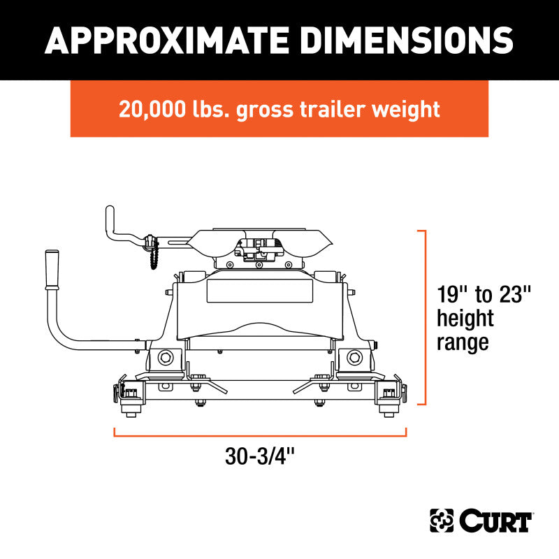 The CURT Q20 is designed to offer the quietest 5th wheel towing possible. It does this using a spherical axial bearing. This unique pivoting mechanism is built into the hitch head and allows it to tilt with the 5th wheel trailer in any direction necessary. With its dual-locking jaws for 360-degree pin contact and three grease fittings for continuous lubrication, the spherical axial bearing provides smooth, safe, quiet towing, even with large 5th wheel trailers. The Q20 also makes the coupling process easier. It features a self-aligning head to help reduce errors when backing up to the kingpin, as well as a three-position coupling indicator, eliminating the need to get out of the vehicle to check the connection. This 20K 5th wheel hitch comes with the CURT R20 slider and the CURT OEM puck system 5th wheel slider adapter. It is designed to be mounted on select Chevrolet or GMC short-bed pickup trucks with the truck bed puck system (year range specific). Using a set of quarter-turn anchors, the adapter quickly and easily drop into the pucks, instantly mounting the Q20 hitch and slider and equipping the truck for 5th wheel towing. Once installed, the R20 slider allows for added clearance when making tight turns with your trailer. CURT 5th wheel sliders are true rolling units, meaning they actually roll on wheels that bear the weight of the trailer rather than simply sliding on hollow rods as seen in competitive models. CURT sliders also provide up to 12 in. of displacement as well, unlike the more common 10 in., to give you a wide range of motion and plenty of space to get your RV or other 5th wheel trailer around any turn. This Q20 hitch with puck system slider is only intended to fit select Chevrolet or GMC trucks with a year-specific puck system and cannot be installed without it. Certain turret-style pin boxes, such as Sidewinder, are not compatible with CURT Q-series hitches and should not be used as they may create vehicle / trailer handling hazards.