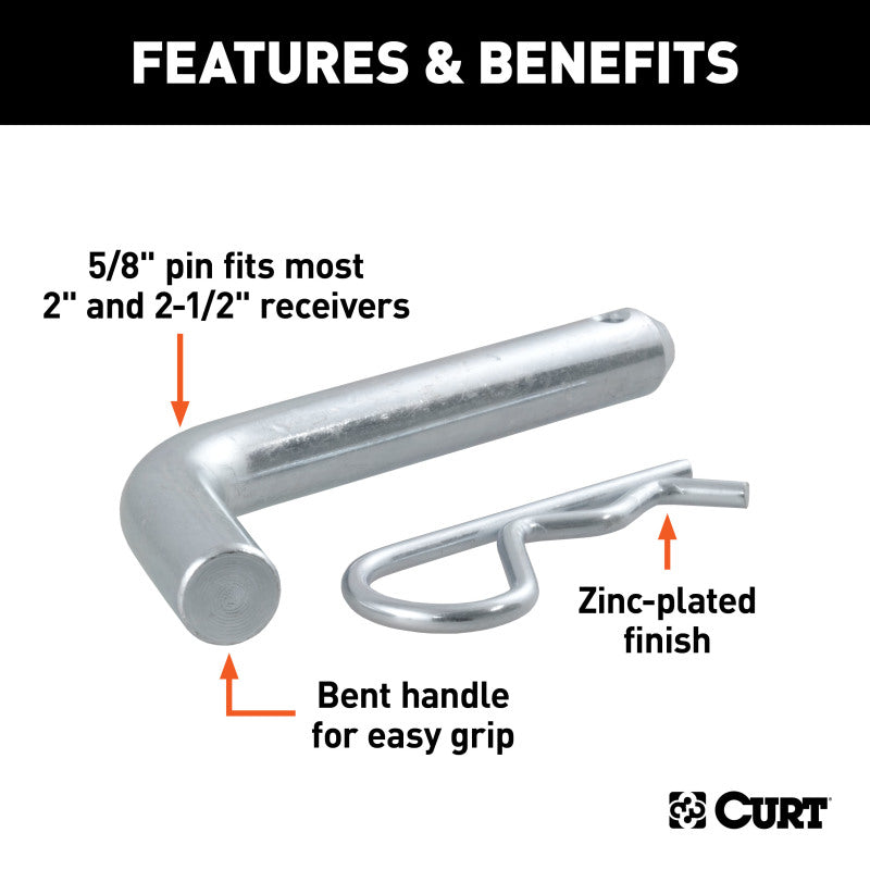 CURT 21580 Trailer Hitch Pin & Clip, 5/8-Inch Diameter, Fits 2 or 2-1/2-Inch Receiver