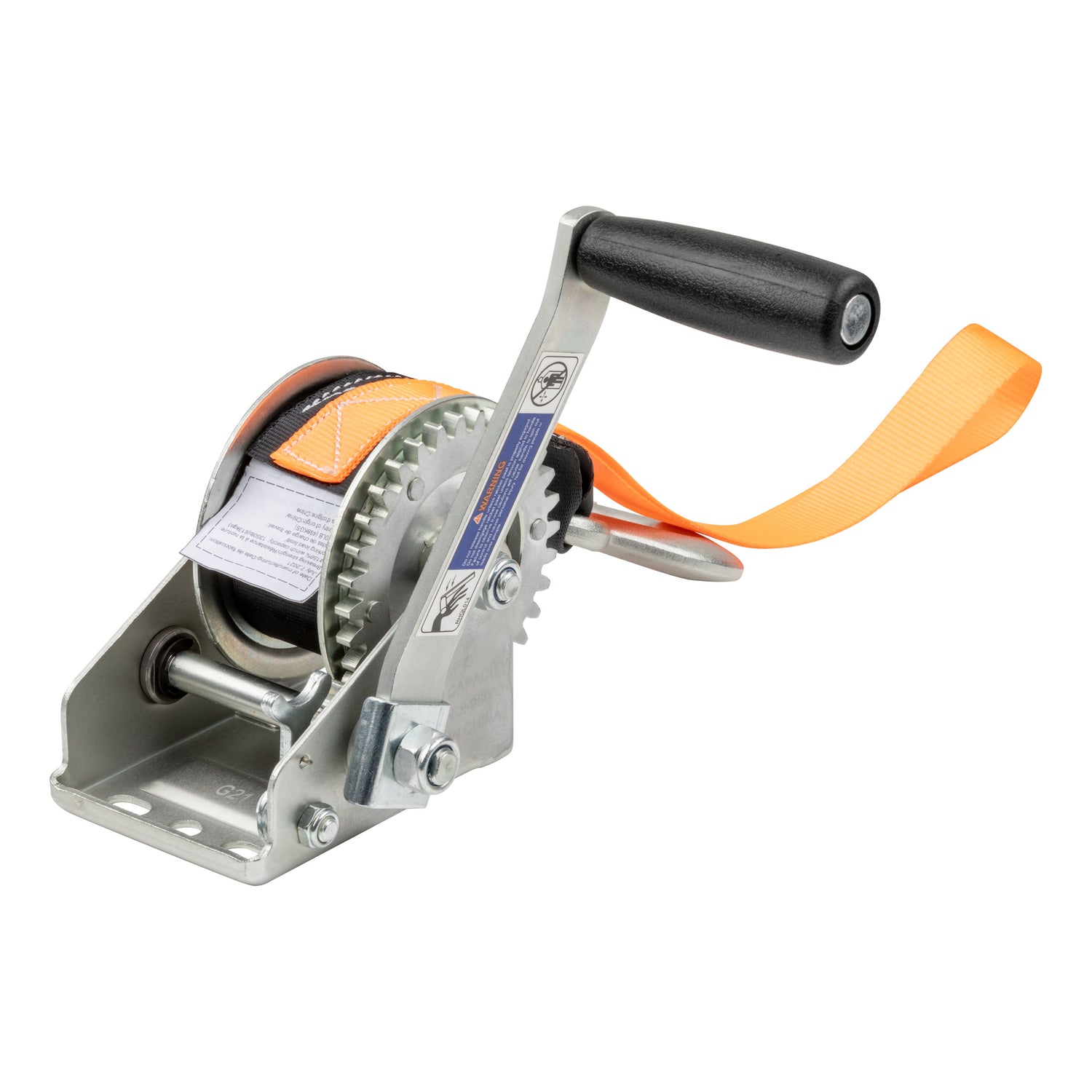 CURT 25002 Manual Hand Crank Jet Ski Trailer Winch with Bow Loop; 900 lbs Capacity; 6.5-In Handle; 3.25:1 Gear Ratio; 15ft. Strap
