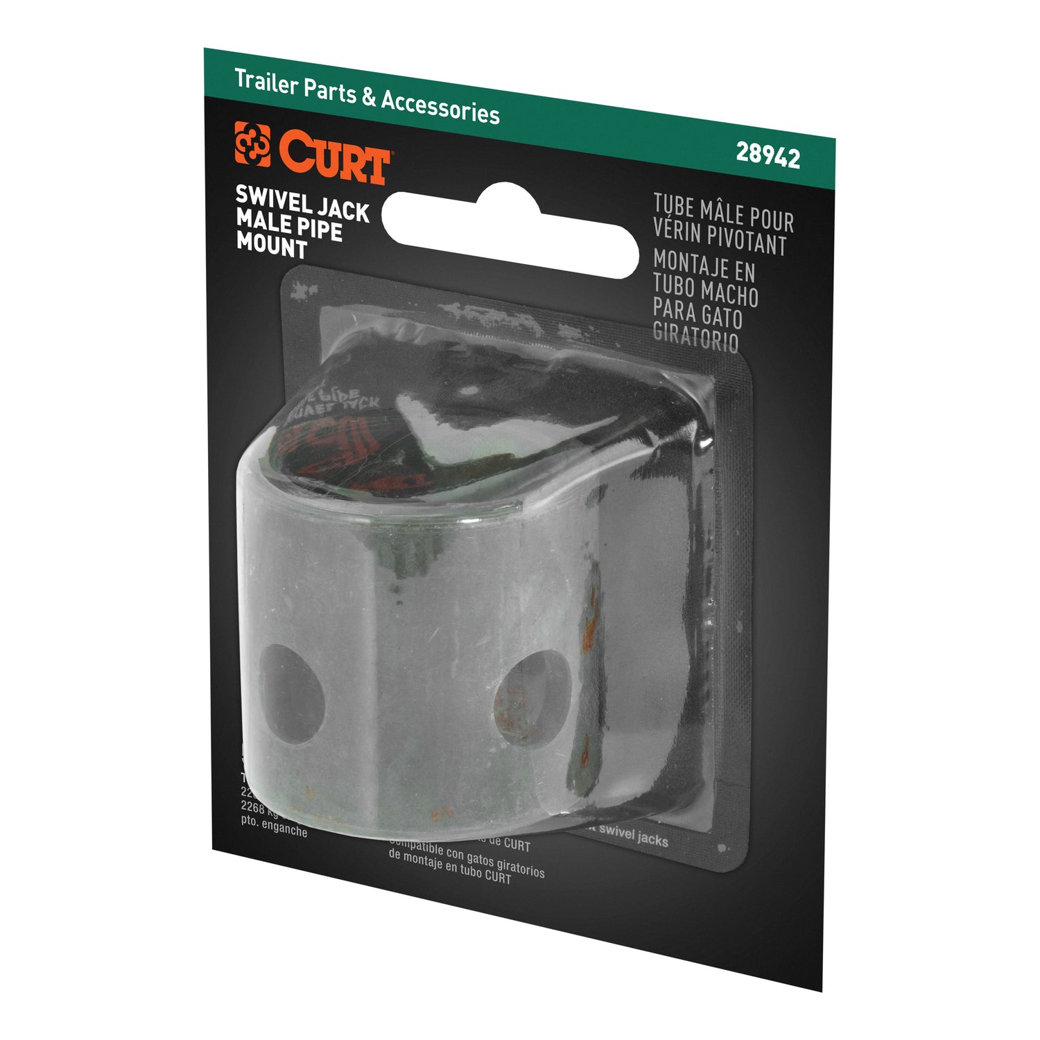 In our goal of being your best source for all things towing, the CURT line of trailer jacks is designed with care and manufactured with pride. CURT jacks are made with quality to promote the life and function of your trailer, and they come in several different styles to accommodate your needs, whether you are a frequenter of the boat landing, the campground, the racetrack or the farm. This replacement jack mounting bracket is the male pipe end, intended to mount a CURT swivel jack. It allows for easy swiveling of the jack post, to be folded up and out of the way when not in use, and inserts into the female pipe end #28930. It comes with a 9/16 in. pin hole.
