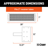 The CURT Grip Step receiver hitch step is the perfect way to add a convenient and highly useful step up into your vehicle, utilizing your trailer hitch. It quickly and securely installs into any standard 2-inch x 2-inch receiver hitch and provides a high-traction 26-inch x 7-inch stepping surface (hitch pin included). The Grip Step aluminum hitch step can be used on the front of the vehicle for maintenance or at the rear for accessing the truck bed or cargo area. This receiver hitch step is constructed from powder-coated aluminum to be highly weather-resistant and non-corrosive. The expanded aluminum treads provide unparalleled traction, locking onto your shoe or boot and actively resisting slips and skids. The metal design is also extremely durable, and the open treads allow dirt and debris to pass through the step, keeping it clean for future use.